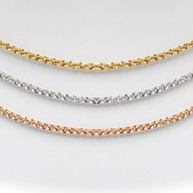 - Design & Versatilità : Un accessorio composto da finissime maglie intrecciate in finitura rosè, gold e silver. Puoi indossarlo singolarmente o unire tutti braccialetti al polso , per creare un aspetto unico e personalizzato aggiungendo un tocco di raffinatezza a qualsiasi outfit. Questo bracciale propone accattivanti e armoniose combinazioni di stile se unito alla collanina coordinata.